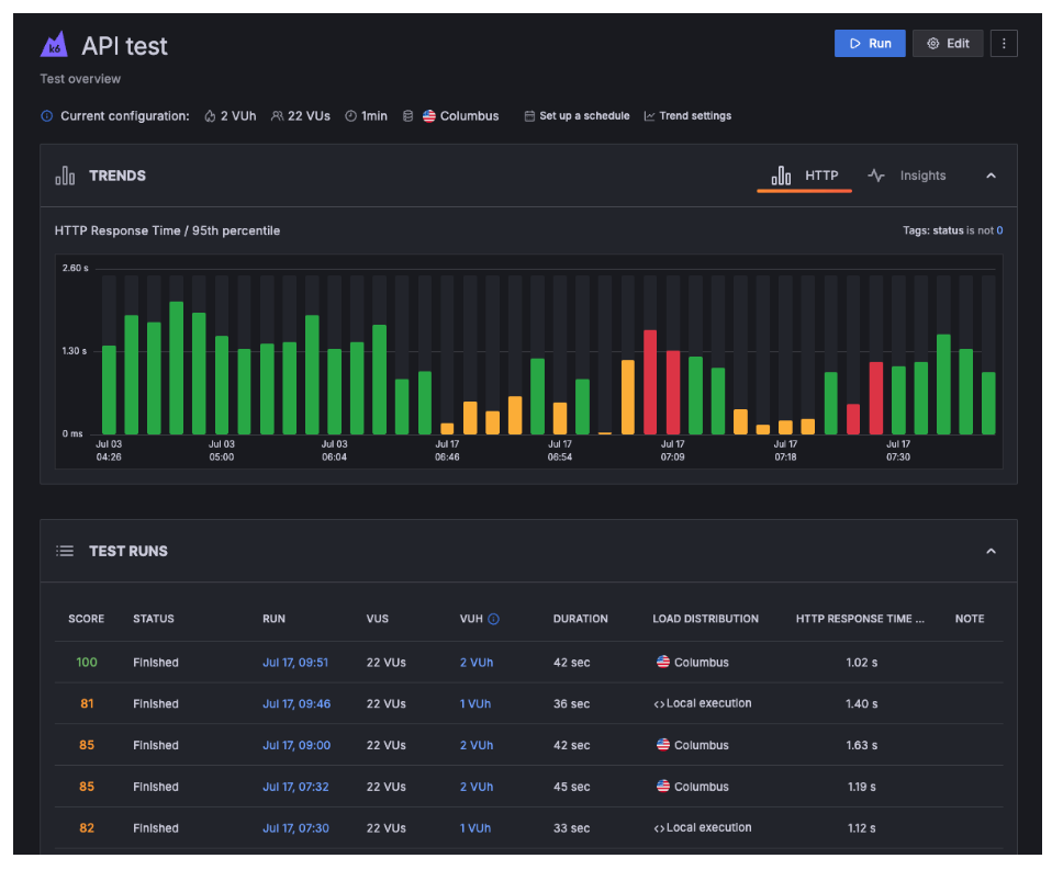 Once your script is ready, you can run it using the k6 CLI, Grafana Cloud k6, or Synthetic Monitoring to gain valuable insights into your application's performance.