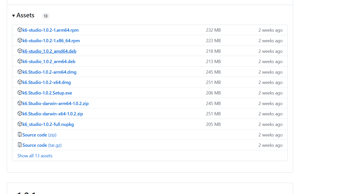 Go to the Releases page in the k6 Studio GitHub repository.